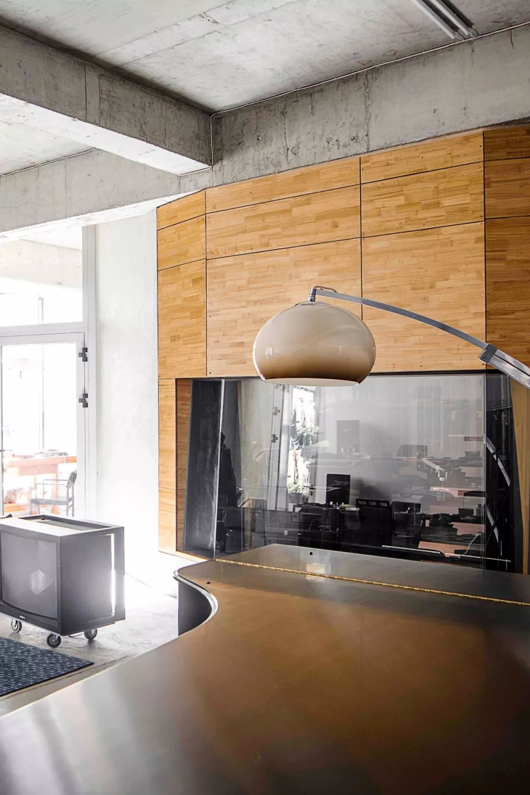 四年前,林朝阳在朋友的介绍下接触到了这个空间,继而与建筑师朋友赵方一拍即合,以此为实验地开始长达一年的设计和改造。为了最大化利用空间,满足其工作室和居住的复合需求,他们对原有结构做了大量的改动。概念方案是要建造一个房中房,灵感来自于四合院以墙围合的内向空间。同时又糅合回廊的形态,以音乐控制室为中心,把动线规划成一个“回”字。这样的空间策略不仅有利于之后区域功能上的独立性,也在象征意义上隐喻了中国人生生不息的概念。彼此相对独立的功能区因回廊的流动性被整合到一起。另一方面,他们从西方古典建筑采光方式中得到启发,通过加大外围窗户,弱化外墙封闭性,使室内尽可能获得自然光线。纵使人置身其内,也几乎意识不到身处于大楼之中。