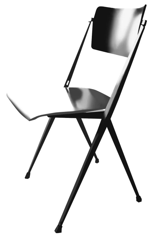 右 荷兰工业建筑师 Wim Rietveld 在60年代设计的 Pyramid 椅,由简单直接的线面构成,为林挚爱