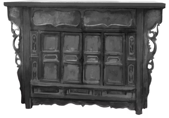 由上至下 欧洲30年代的玩具积木车,林将其当作纪念品,积木车代表了对一个孩子理解音乐、建筑的启蒙,一切都是结构和比例的游戏;明代柴木漆制供桌