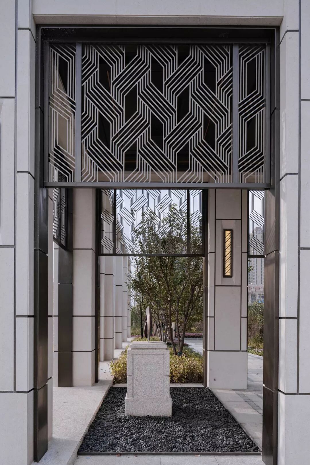 在水庭的中心,一尊艺术化的雕塑伫立其间,