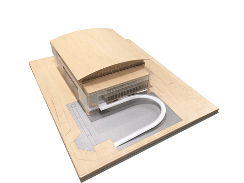 城市是一个巨大的有机体,废弃的建筑与城市割裂,犹如一处坏死的“器官”。我们的策略是采用“介入式的针灸疗法”,利用一条尺度宜人的弧形坡道将城市中的新鲜“血液”重新注入场地之中,用最简单有效、省时省力的方式激活场地与建筑。