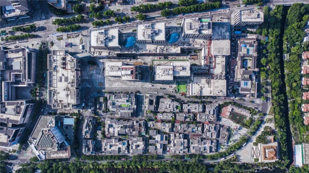 宽厚里在改造中,对于场地中原有的四处传统建筑分别进行了修缮及复原。新建组团在总平面设计时均对历史建筑做适当退让,在历史建筑周边形成相对开阔空间。将历史风貌融入项目中,同时,实现文脉的延续和现在商业功能的并存。