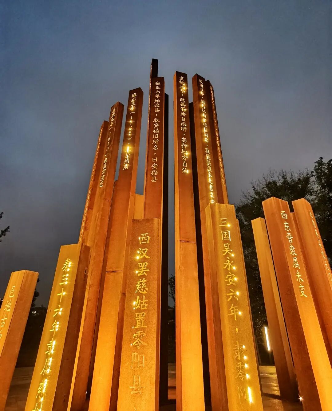 雕塑以古代书简为造型模本,整合临澧城发展时间线,阴刻临澧历史大事件。人们可以沿螺旋路线走入其中,漫卷临澧文明。