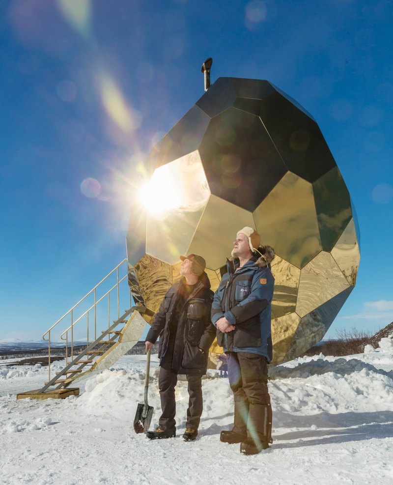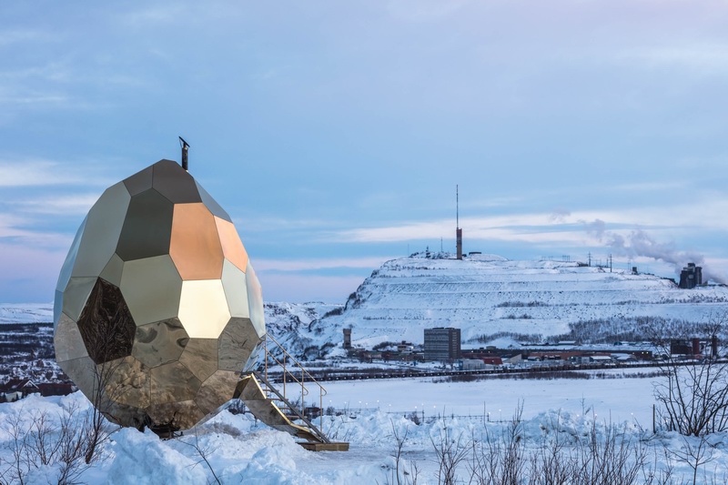 都知道北欧人喜欢蒸桑拿,Bigert & Bergstrom工作室在瑞典基律纳郊外设计了一颗“黄金蛋”桑拿屋——SOLAR EGG,以此作为当地开发商Riksbyggen进行的城市改造项目的一部分。