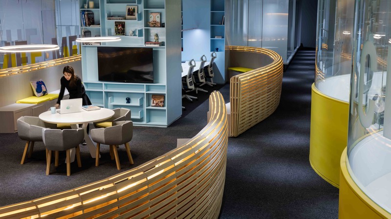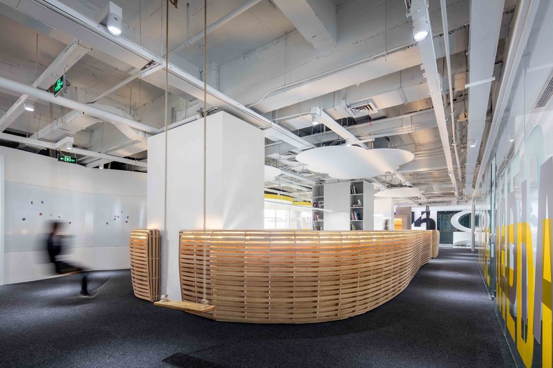 于是我们在整个的设计中,尽力去掉边界和比较硬朗的造型。很庆幸这些都收到95后小伙伴的热烈欢迎。比如空间中没有太多的界定,大家会在自己更喜欢的区域停留。也会把这个停留作为自己的高效时段去完成工作。