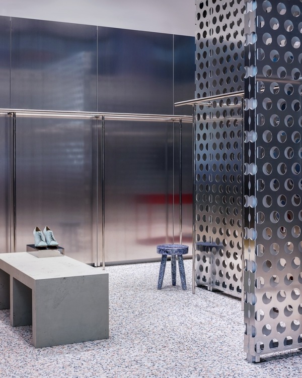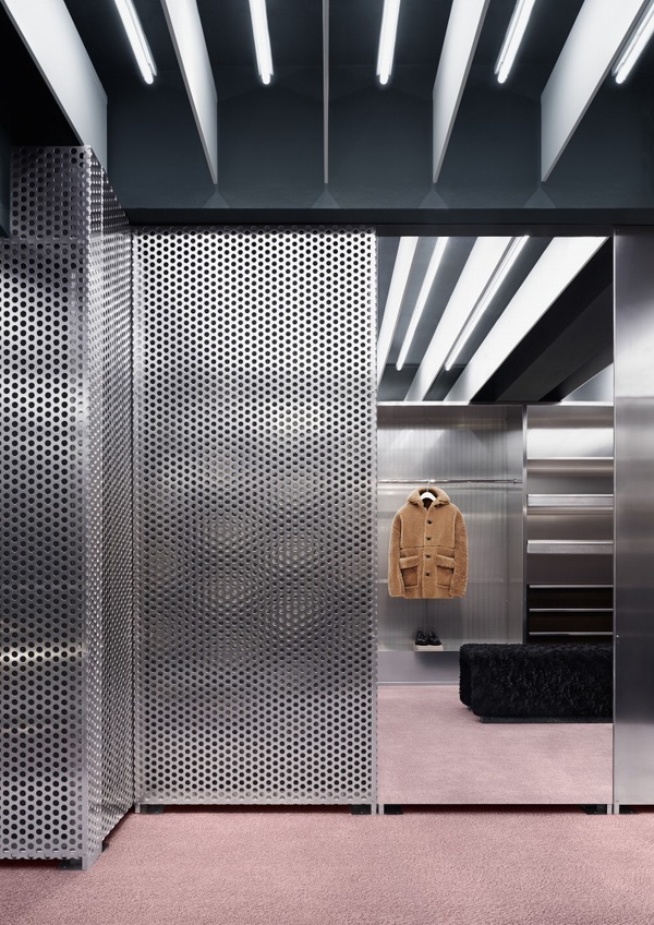 以下展示了由Bozarthfornell Architects团队为Acne Studios设计的五家专卖店。虽然遍布全球远隔千里,却有着统一的视觉特征,穿孔金属板,拉丝不锈钢板墙面配以各色大理石地面。艺术化的空间完美地附和着该品牌的调性。使得时装店更像一间艺术馆,陈列着珍贵的产品。