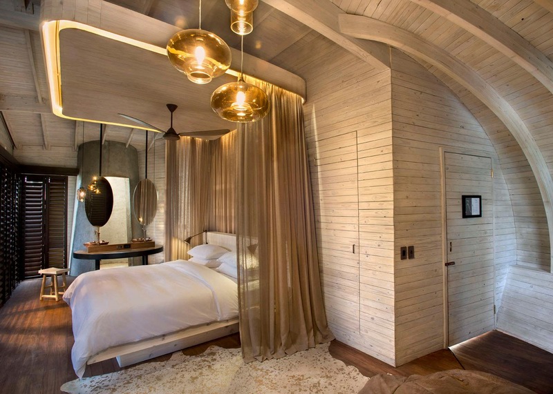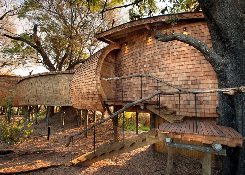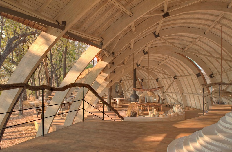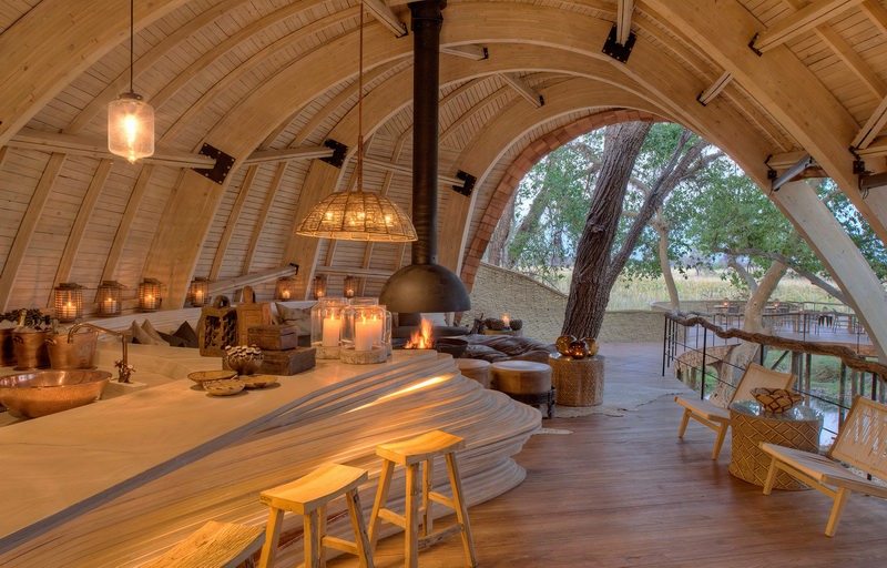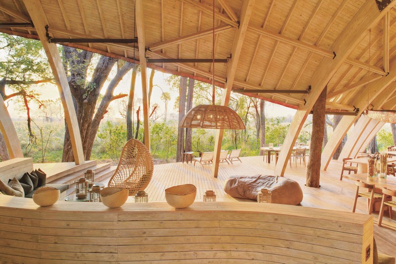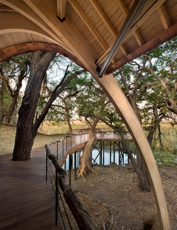 来自南非的设计团队Nicholas Plewman Architects与英国团队Michaelis Boyd克服了重重困难,利用环境周边的树木,终于完成了这座造型独特且拥有24个床位的酒店设计——Sandibe Okavango Safari Lodge。