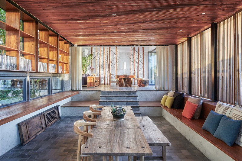 旧物再利用:家具陈设使用当地拆除的老木房梁改制,体现了时间的痕迹与一种在地状态。植物与生活:水院院心种植着百年的古茶树,摘下来的叶就可以在火塘烤制。院子里的石榴,梅子,李子树的果实都会泡制成酒,那应该是到达时的欢迎饮料。后院有一块菜地,摘下来的叶就可以端上早餐餐桌。设计师意图向使用者传递简单、质朴的生活理念。
