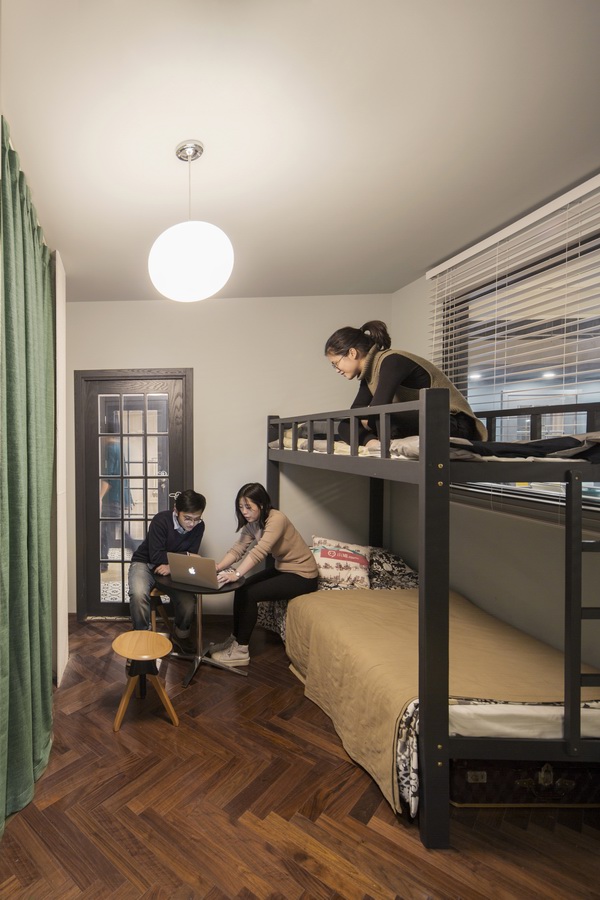 这里其实是国内著名的短租平台“小猪”位于北京的办公室。这家成立仅四年的互联网公司聘请众建筑/众产品(People’s Architecture Office)设计公司为其打造了一处350平米的创意办公空间。将“小猪”公司的主营业务——“租住”与其办公空间相结合,拼贴出了各式各样的生活化场景。
