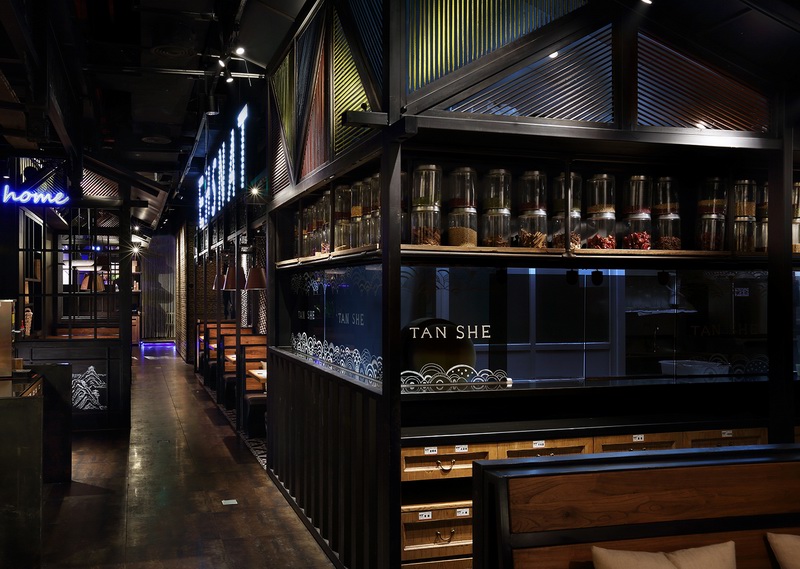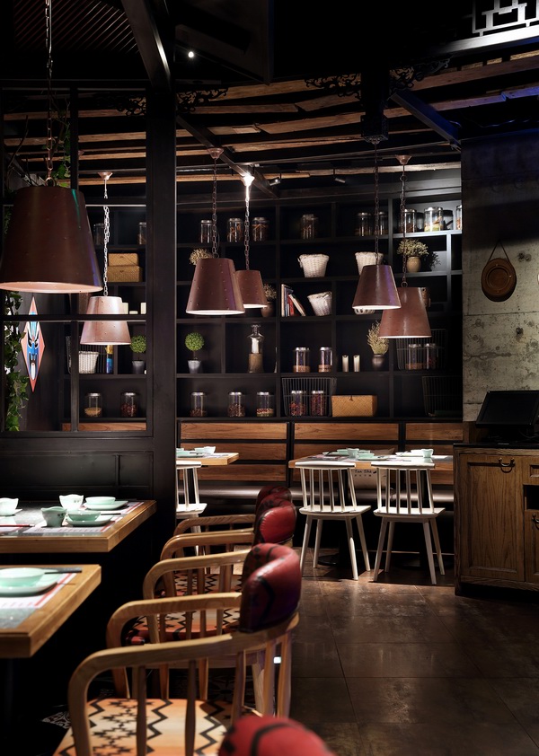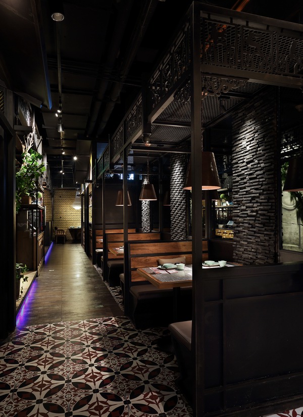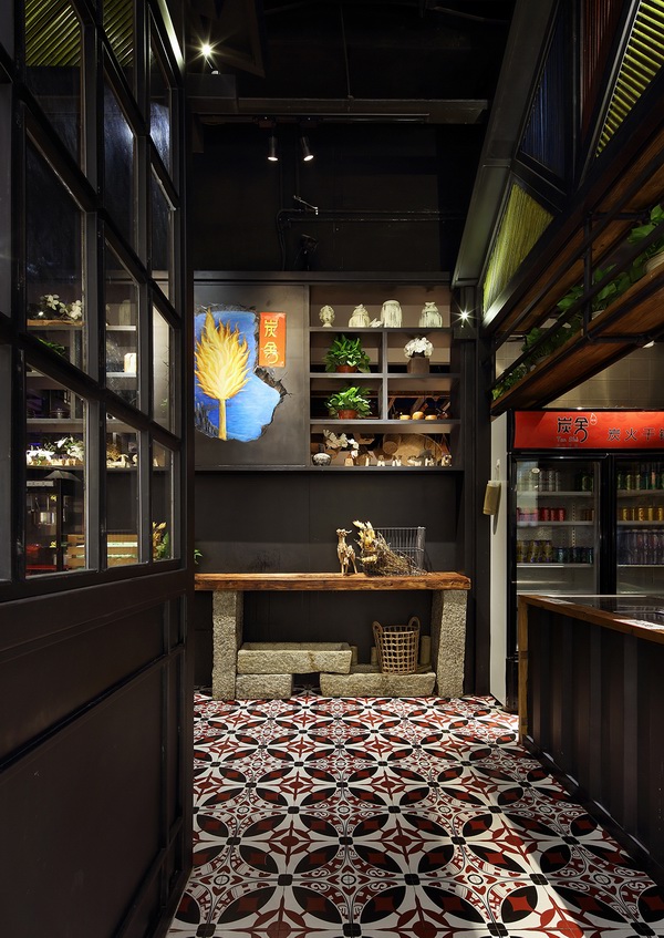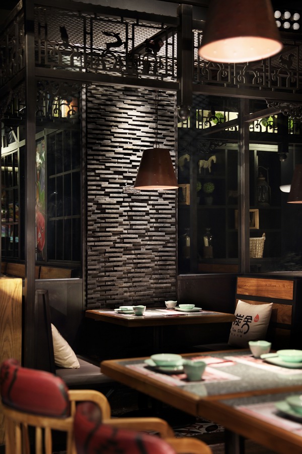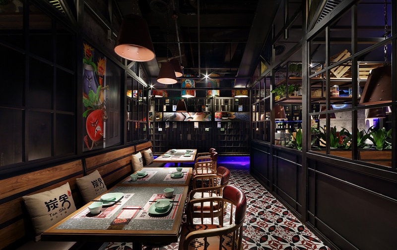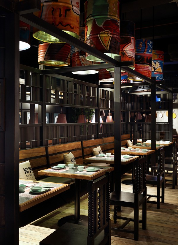 这是一家位于深圳市福田区下沙KKONE购物中心内“碳烧味”十足的干锅餐厅——炭舍,由国内著名餐饮空间设计大师王锟主持设计。