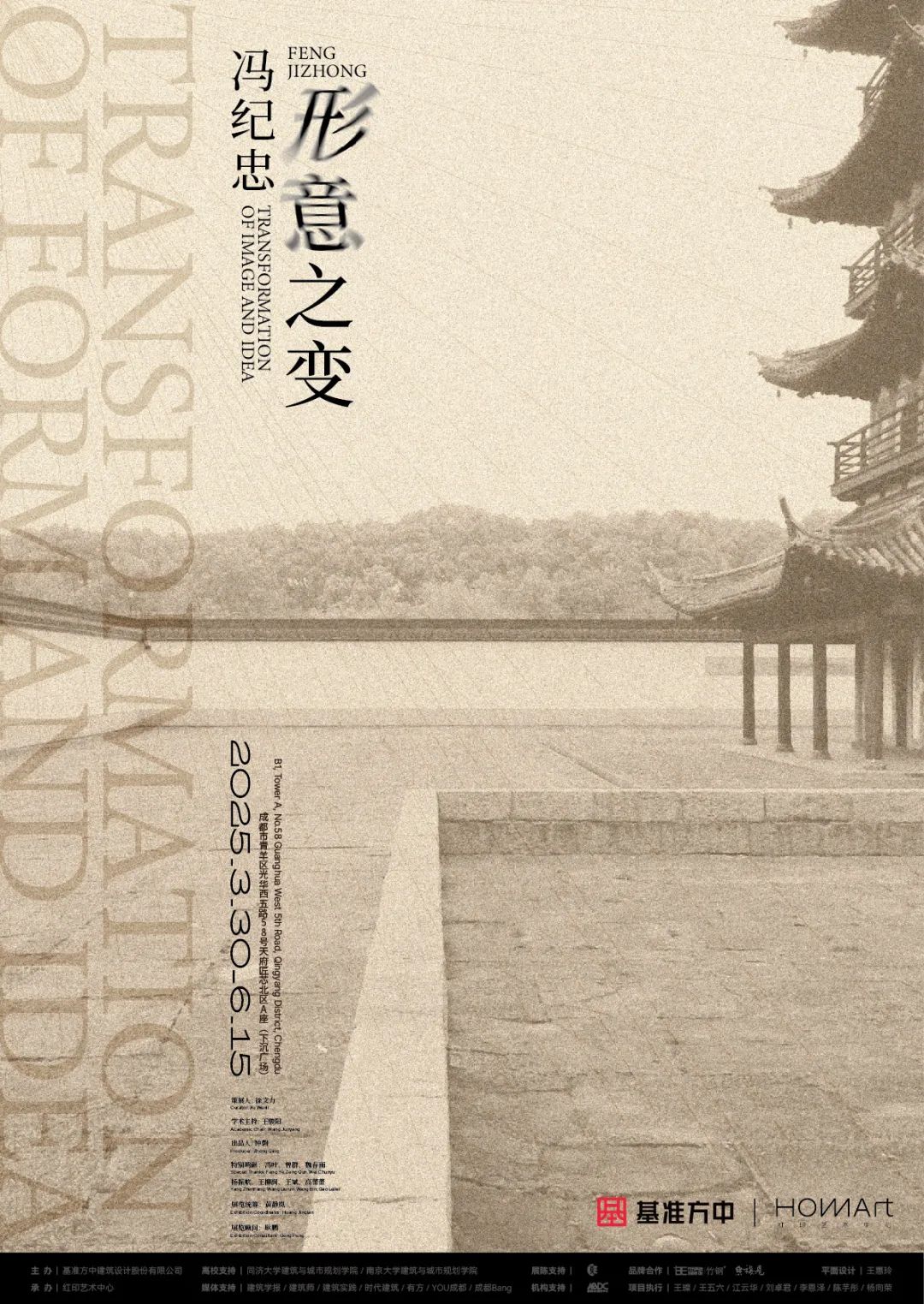 2025年3月29日上午11点,聚焦冯纪忠先生三个重要时期的代表性作品:东湖休养所(1950年,35岁)、花港茶室(1960年,45岁)、方塔园与何陋轩(1980年,65岁)的展览“冯纪忠:形意之变”于红印艺术中心盛大开幕。展览由基准方中建筑设计股份有限公司主办、红印艺术中心承办,并由左宜右有建筑工作室主持建筑师、建筑学者徐文力担任策展人,南京大学建筑与城市规划学院荣休教授,建筑理论家和建筑评论家王骏阳担任学术主持。展览通过建筑模型、建筑图纸、文献档案、装置与影像等多种媒介,从五个层面——形、情、理、神、意——探讨冯纪忠的园林与建筑设计理念。