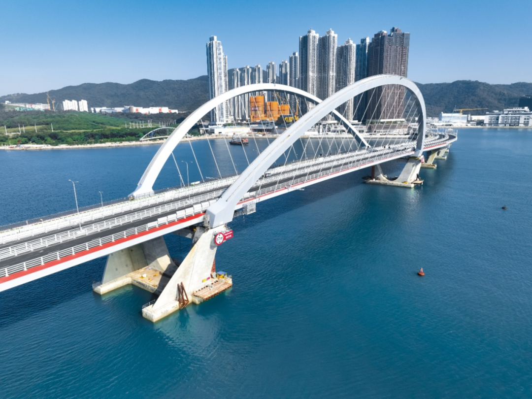 将军澳跨湾连接路是全球首座采用国产欧标S690高强钢建造的大型跨海双拱钢桥,同时也是香港首条集行车道、单车径、行人道于一体的跨海大桥,其主跨200米的钢拱桥为香港跨度最长,“∞” 形桥拱设计象征 “活力无限”。AECOM 深度参与项目全周期,为海上高架桥提供详细设计服务,并为整个跨湾连接路提供工地监督和施工管理服务,以技术创新攻克材料应用与施工难题。