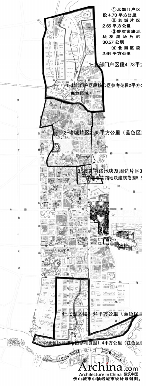 这个区段的竞赛范围包括2.64平方公里的整体城市设计及核心区的景观设计两个层次。整体城市设计规划范围北至魁奇路,南至东平水道,西至规划路,东至岭南大道,面积共2.64平方公里。核心区以《佛山城市中轴线规划设计研究》确定的水轴为基础,面积大约为1.4平方公里。