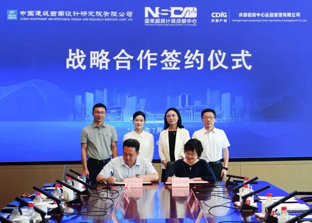 7月16日,中建西南院与国家超级计算成都中心(以下简称成都超算中心)举行交流座谈会,中建西南院党委委员、副总经理弋理,成都数据集团股份有限公司副总经理李建国,四川天府新区数字经济局副局长伍自美出席会议,共同见证战略合作协议签署。院总工程师刘宜丰、院首席信息官王芳,成都超算中心常务副主任王建波参加会议。