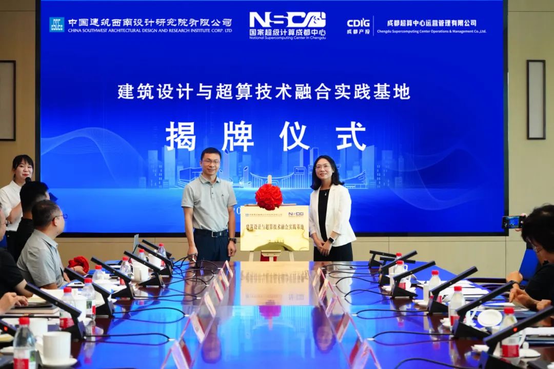 会上,王芳、王建波分别代表中建西南院与成都超算中心签署战略合作协议。弋理、李建国参加“建筑设计与超算技术融合实践基地”揭牌仪式。