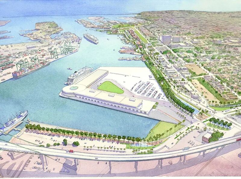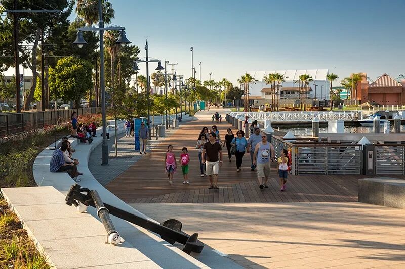过去12年间,AECOM 深度参与洛杉矶滨水区改造工作,围绕从文森特・托马斯大桥(Vincent Thomas Bridge)至海洋防波堤、总长约15公里的核心区域,提供覆盖战略指导、总体规划、方案设计、经济可行性研究及施工管理的全流程专业服务。面对港口日益复杂的发展需求,AECOM 推动产业发展与公共休闲功能有机融合,助力区域实现功能升级与转型提升;针对港口绿色转型挑战,主导落地一系列开创性绿色创新举措,这些举措不仅成为港口可持续发展的核心支撑,更被纳入洛杉矶更广泛的社区及区域再生计划,为城市整体发展提供重要蓝图。