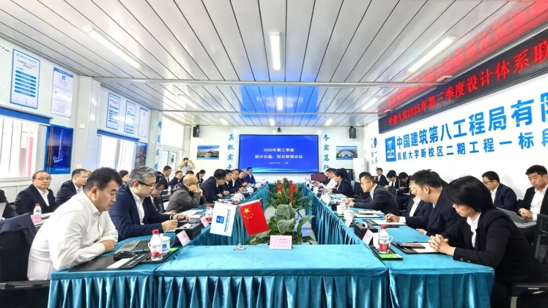 10月15日,中建八局2025年第三季度设计总监、院长联席会议在华北公司中国民航大学二期项目部举办,会议由设计管理总院主办,华北公司承办。总院院长王磊,副院长朱健、孙美茹、陈娟、王洪涛,华北公司总工程师郭亮亮,各二级单位设计总监、设计院院长、设计管理负责人共40余人参会。