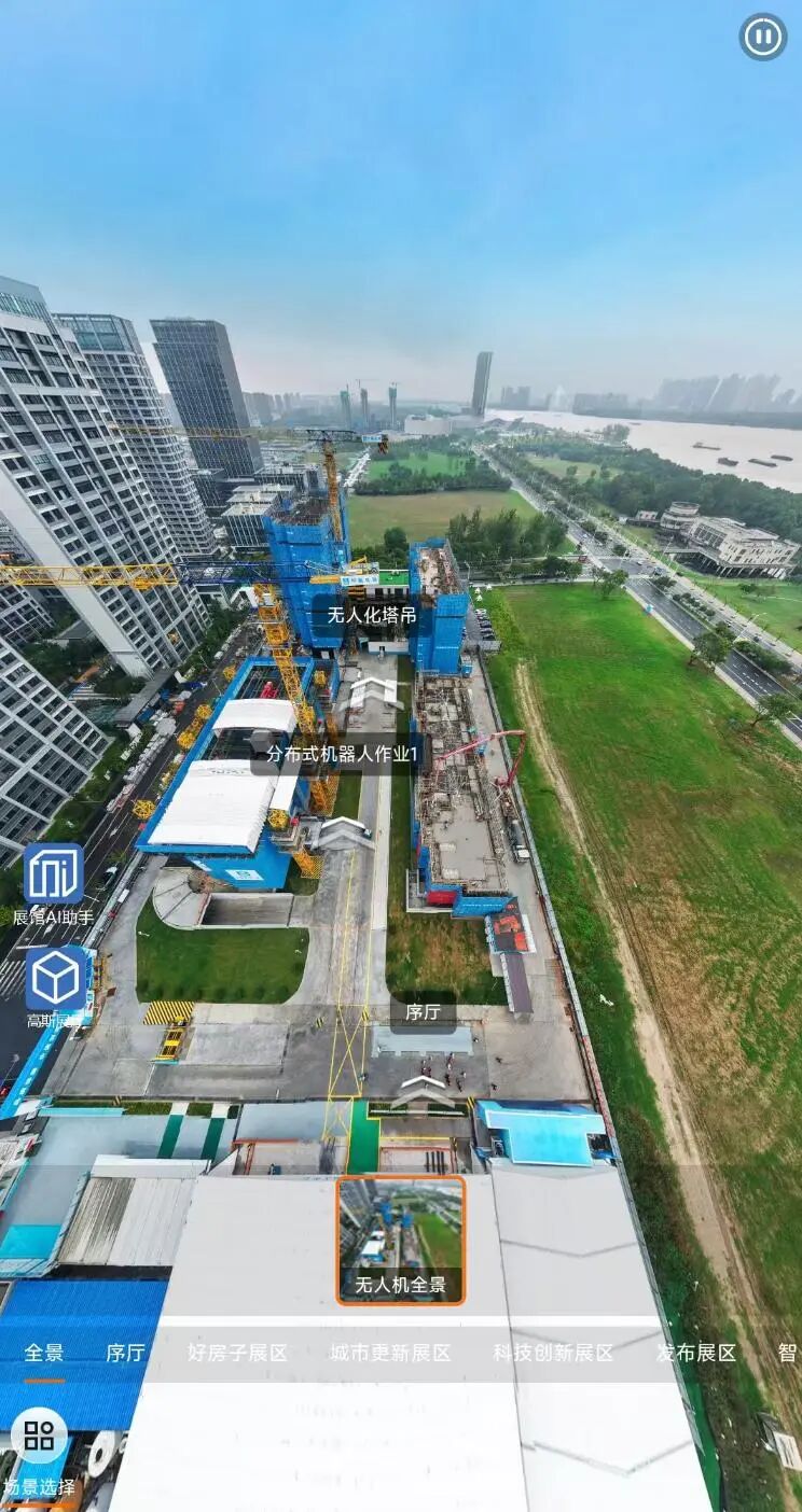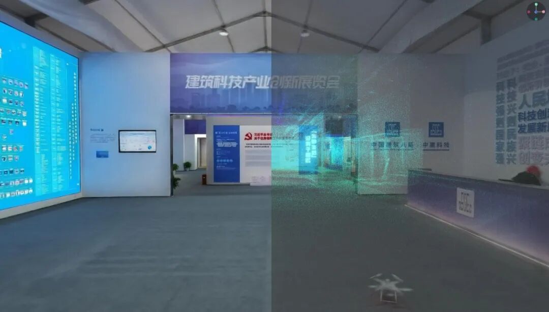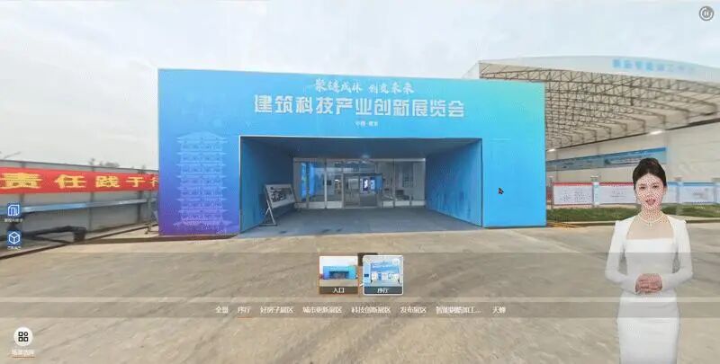 该展厅以高精度全景影像为基底,深度融合高斯泼溅(3DGS)神经渲染、超写实数字人讲解以及八局自研的AI知识库,为全球访客构建了一个零时差、身临其境的云端观展体验。观众无需到场,即可360°全方位尽览建筑科技的最新前沿成果。