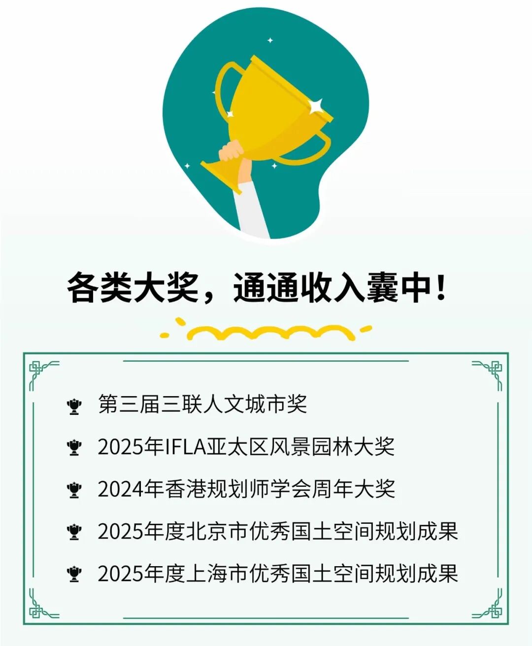 此外,东涌新市镇扩展区(东)休闲用地发展(合作方:P&T)、三亚海棠河生态公园、深圳东部国际旅游度假区文旅策划及综合规划设计、深圳城脉中心大厦等项目亦再获包括2025年香港城市设计学会城市设计大奖、第九届新加坡规划师学会规划奖、2025年LOOP Design Awards、2024-2025年GHDA环球人居设计大奖等荣誉。