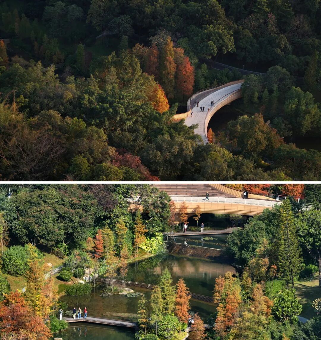 公园坐拥广州“中央绿肺”白云山的西麓,核心区约35公顷。其前身云溪公园始建于1999年,伴随旧机场搬迁、白云新城和地铁新线路的建设,原有配套设施亟待升级,以满足新城功能与市民日益多元的生活需求。焕新后的公园,不仅吸引周边居民深入探索山林野趣,更丰富了市民在白云山的整体游憩体验。