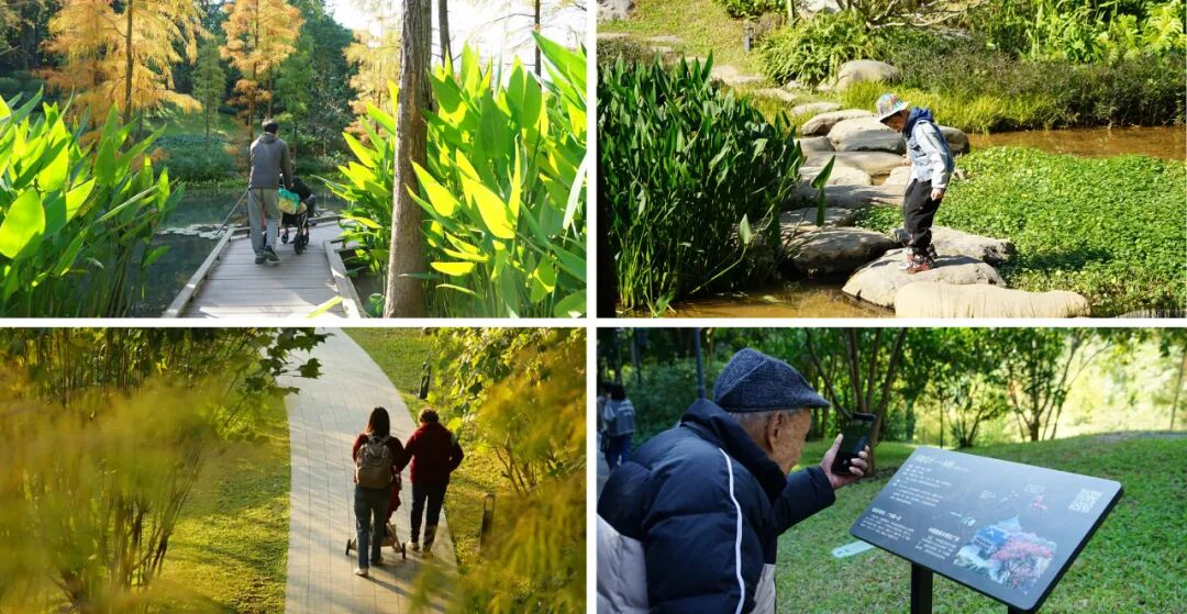 设计巧妙融合生态治水、基于自然的解决方案(NbS)等核心理念,通过对场地自然格局的因地制宜梳理,并结合全龄友好的包容性设计,公园成功吸引了多元化的访客。艺术化的构筑物设计、植物展示手法,以及引入“自然艺术策展”等空间创新运营模式,不仅激活社区活力,也提升了公园经济效益,为公园注入了可持续生命力。