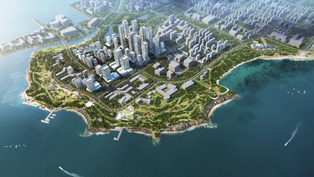八角湾公园位于黄渤海新区八角副中心,是新城最大的公共开放空间,总面积达92公顷。八角湾新城定位为科学创新枢纽和城市增长引擎,集聚七所高校(包括烟台大学、山东建筑大学等)、中央商务区和创新园区,毗邻公园的烟台大学延续了“校门直面海景”的传统,使公园成为城市与学术社区共享的重要滨海资源。