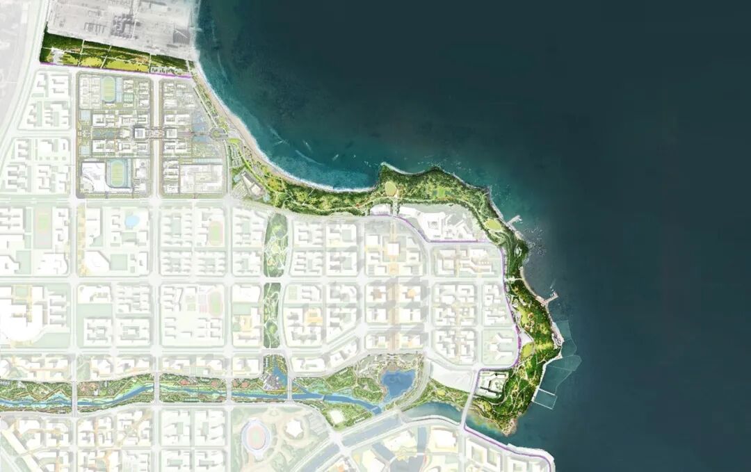 设计策略构建了海洋与城市之间的可持续生态框架,形成三层功能体系:城市界面层通过绿道系统、海景视廊与“海绵设施”提升城市边缘服务;核心层以多层次森林与低干预活动空间营造多样化自然景观;滨海层则保留潮间带与岩岸林带作为栖息地保护区,限制通行以守护鸟类与近岸生态,同时将北部沙滩打造为主要互动海滨空间,形成充满文化活力的滨海新地标。