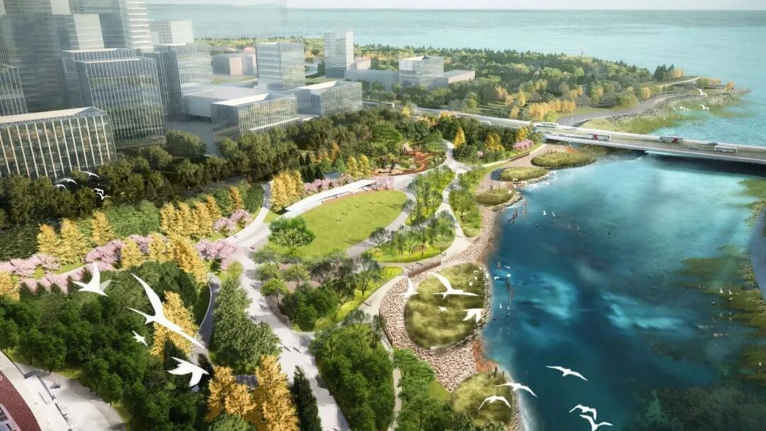 基于此背景,设计团队提出“自然优先”的理念,重新定位公园功能,将原本的“城市娱乐休闲中心”框架转化为“滨海全景走廊”,以候鸟栖息地为核心愿景,强调生态保护与可持续发展。整体空间分为三大特色分区:多样化滨岸公园,在河海交汇处营造对鹬类友好的栖息环境;野趣崖林,凸显岩岸与林地的自然之美;活力海滩,结合沙滩、广场与市集,为周边高校师生提供充满活力的公共空间。