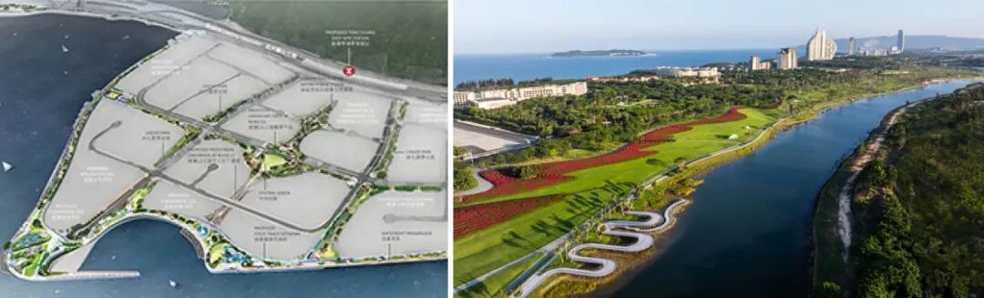 东涌新市镇扩展区(东)休闲用地发展[左图],三亚海棠河生态公园[右图]