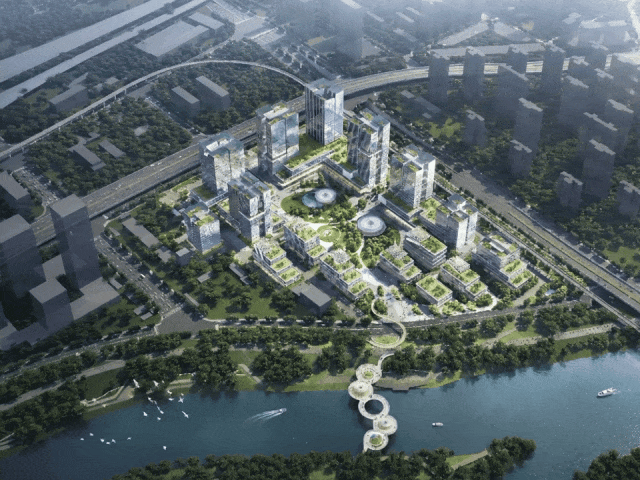 绿色生态,空间共生:项目不仅是工作场所,更是生态的连接体。它将都市肌理、浏阳河风光带与园区内部生态无缝连接,形成低碳聚落。