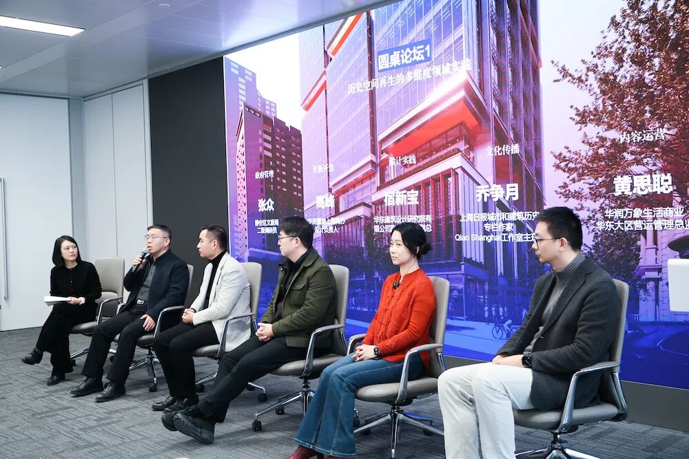 在首场对话中,静安文旅张众、华润置地上海商办负责人高峰、华东建筑设计有限公司副总经理宿新宝、上海日报城市和建筑历史专栏作家Qiao Shanghai工作室主理人乔争月及华润万象生活商业华东大区营运管理总监黄思聪,分别代表政府管理、更新开发、设计实践、文化传播与内容运营五个维度,探讨了在城市更新全流程中如何打破壁垒、实现跨界协同与价值赋能。