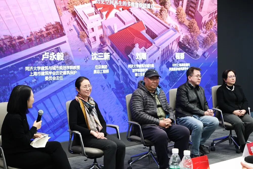 第二场对话由同济大学建筑与城规学院教授,上海市建筑学会历史建筑保护委员会主任卢永毅教授、同济大学刘刚教授、住总集团原总工程师沈三新、KPF上海高级顾问程蓉参与展开。专家们跳出单体实践,从历史观念、保护技艺、场景呈现与社会学角度,探讨了未来历史空间再生新旧融合的理想模式。