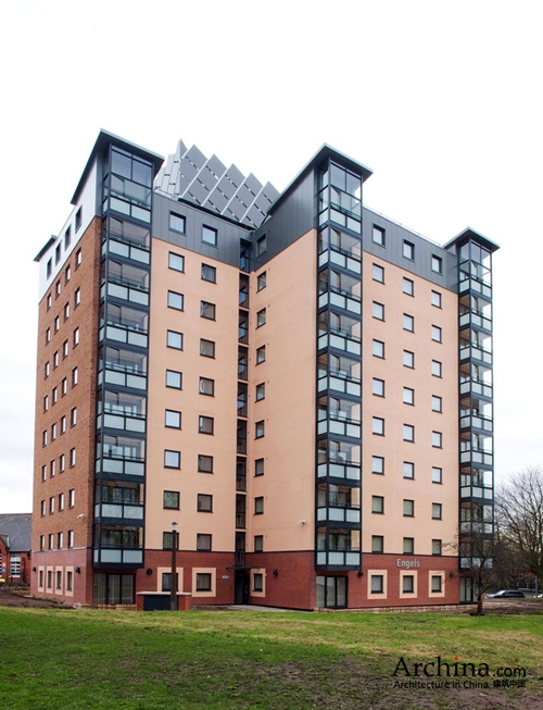 位于英国索尔福德(Salford)的恩格斯屋(Engels House)是四座里外全部翻新的塔楼之一,也是“城西住房基金会”(City West Housing Trust)耗资1400万英镑的工程的一部分。
