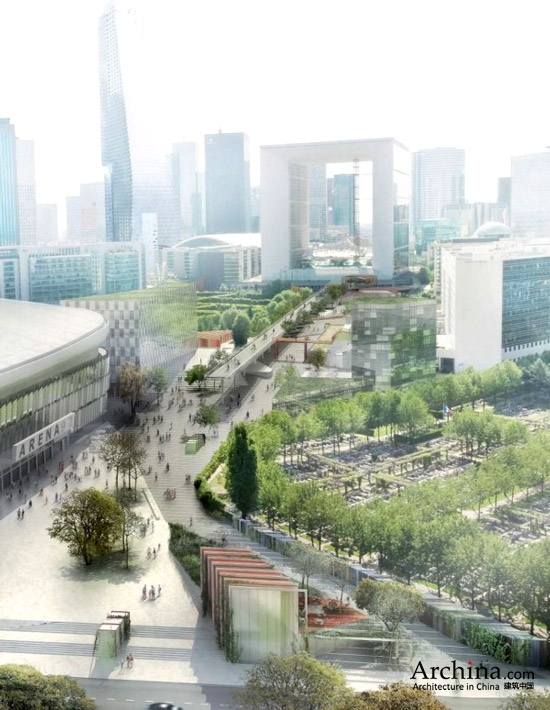 该方案将在拉德芳斯现有建筑的基础上建设,周边地区的振兴也将给拉德芳斯带来更多的游客,通过展示建筑、绿化和文化艺术,让人们在工作中娱乐,在娱乐中工作。该方案的园林和可提供导航功能的道路等部分已经开始施工,预计整个项目将于2015年完成。