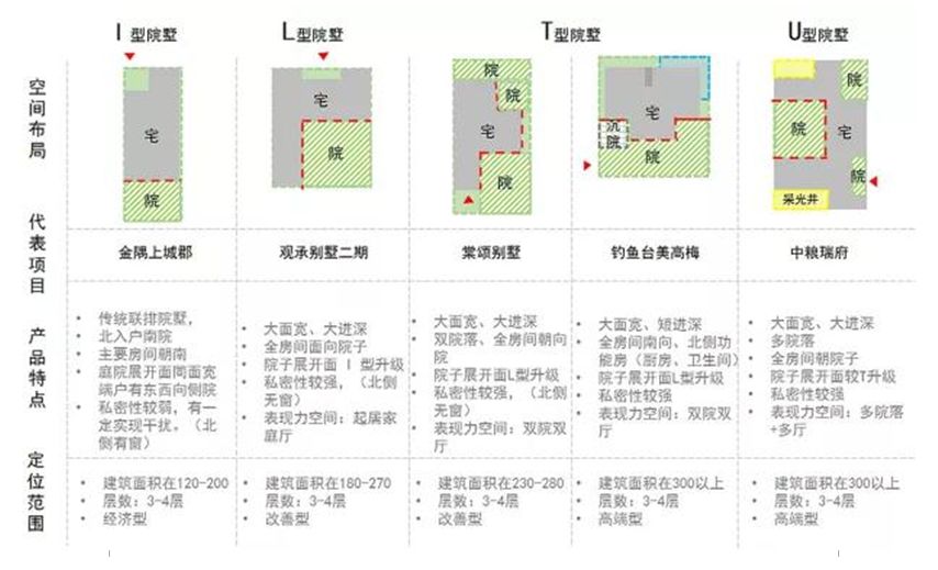 在产品院墅化的背景下,联排、双拼也不断的迭代创新,从传统联排I型产品升级成L型再进化到当下更多元的T、U型等等。