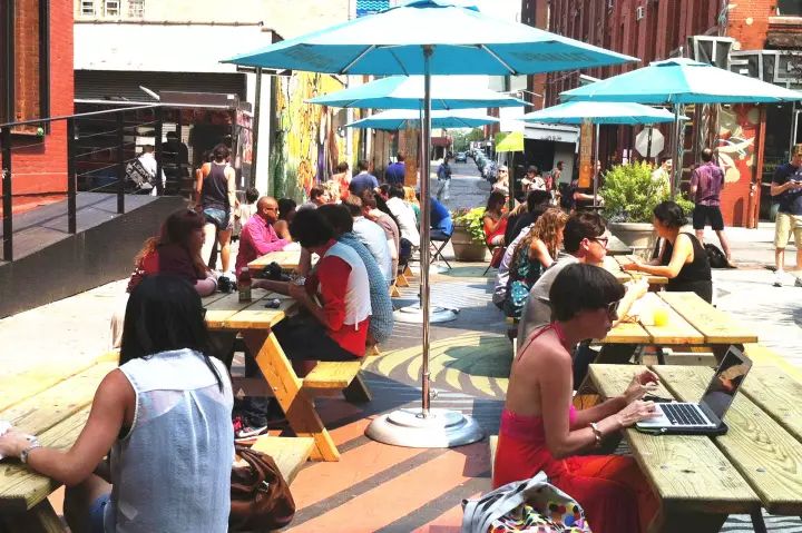 通过比较创新街区中作为社交型公共空间之一的零售空间的物理和非物理特征,如空间配置、价格范围、营业时间、设计和使用等,Kim(2013)基于从类似点评服务(Yelp)所有零售空间收集的信息,提出在肯戴尔广场中,好的社交型公共空间的共同特征是:有免费WIFI;室外座位与人行道互通;“中等”价位;24小时营业;有“时髦”的氛围。而对于创新街区中社交型公共空间的开放空间也有好坏之差。