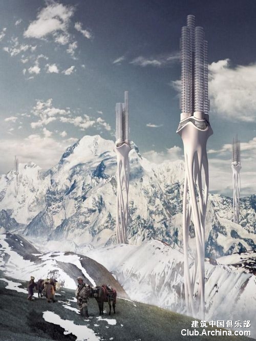喜马拉雅的水塔The himalayan water tower,2012年eVolo摩天楼大赛头等奖,由中国的哈工大的学生团队设计。设计者:郑智、赵洪川、宋东白 (谐音)
