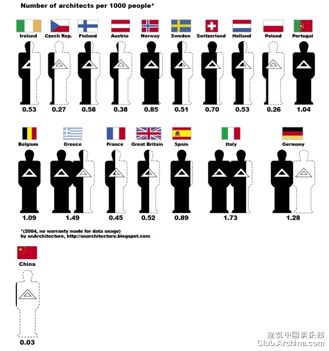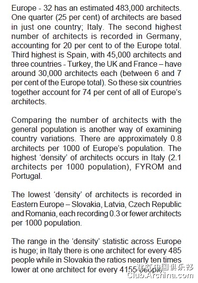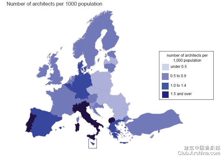 The lowest ‘density’ of architects is recorded in Eastern Europe – lovakia, Latvia, Czech Republic and Romania, each recording 0.3 or fewer architects
