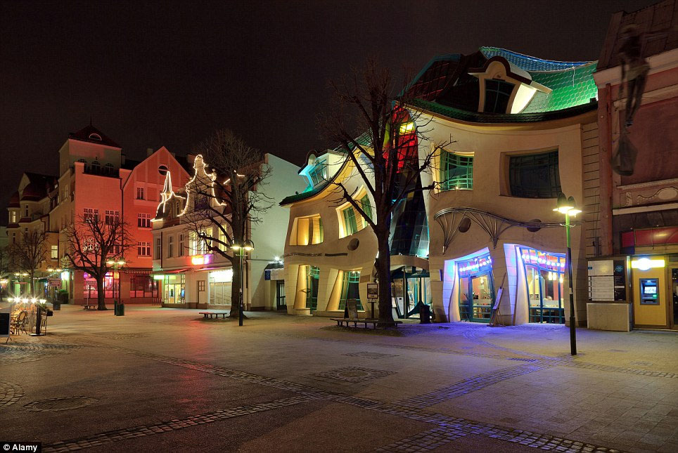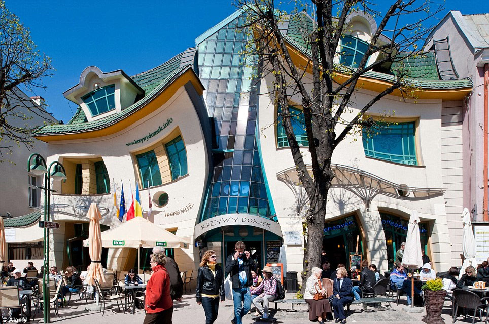 这座建于2004年的房子占地面积为4000平方米,现在变身为一家水吧。自从建成以后,“歪房子”就一直是波兰被拍摄次数最多的建筑。有人说,“歪房子”看起来就像小孩的画被压扁了一样,又像一座卡通房子,还有人说它看起来像要融化了似的。