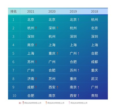 北京2021年10月27日 /美通社/ -- 10月26日,IDC和浪潮信息联合发布《2021-2022中国人工智能计算力发展评估报告》(以下简称:报告)在AICC2021人工智能计算大会上发布,旨在通过宏观经济、技术成熟度、AI劳动供给、行业及地域四大方面综合考量和评估我国人工智能发展水平。人工智能城市排行榜倍受关注,TOP5排名依次为北京、杭州、深圳、南京、上海,排名6-10的城市为苏州、广州、济南、成都、合肥。北京、深圳、杭州持续领跑前三,南京首次进入前五,济南首次进入前十。