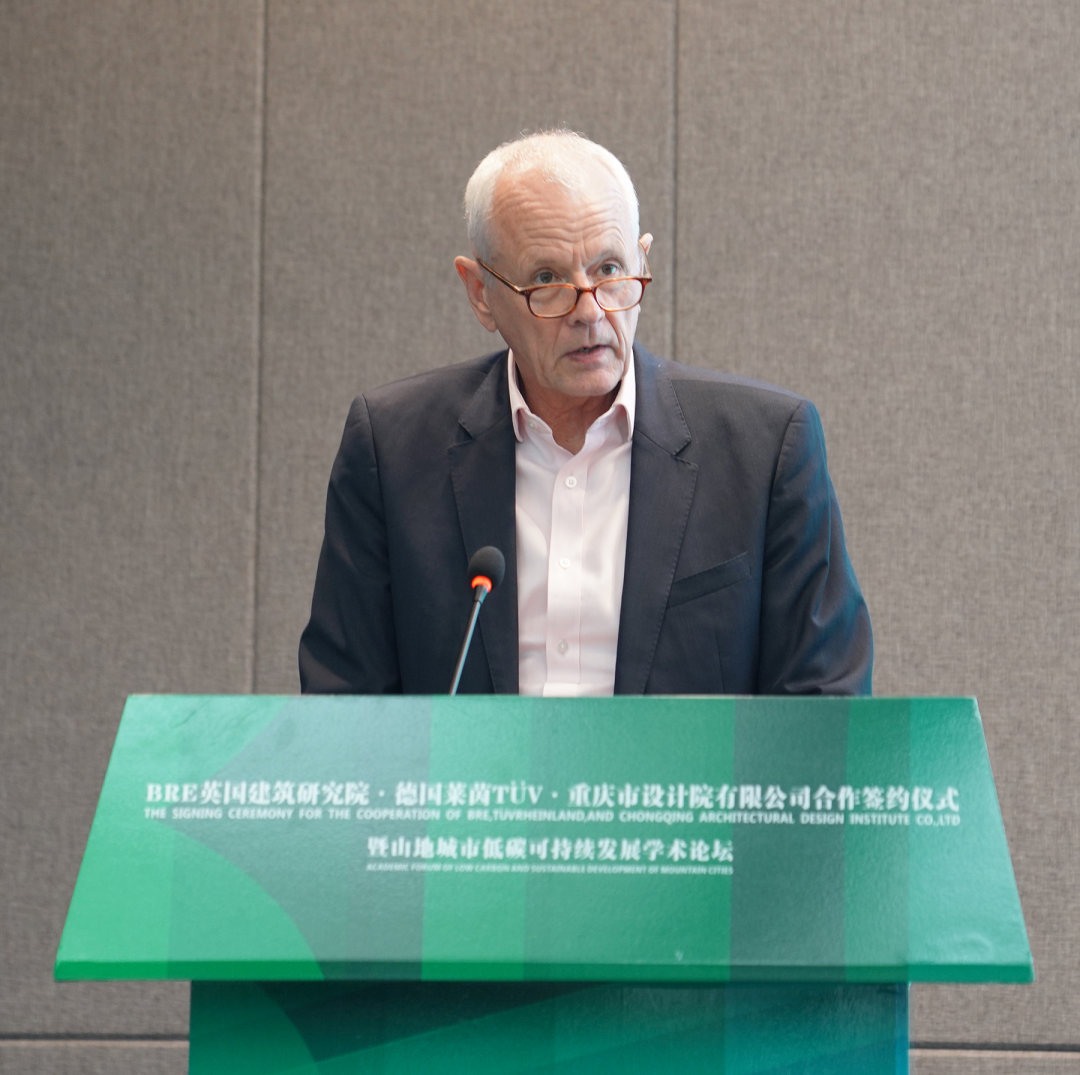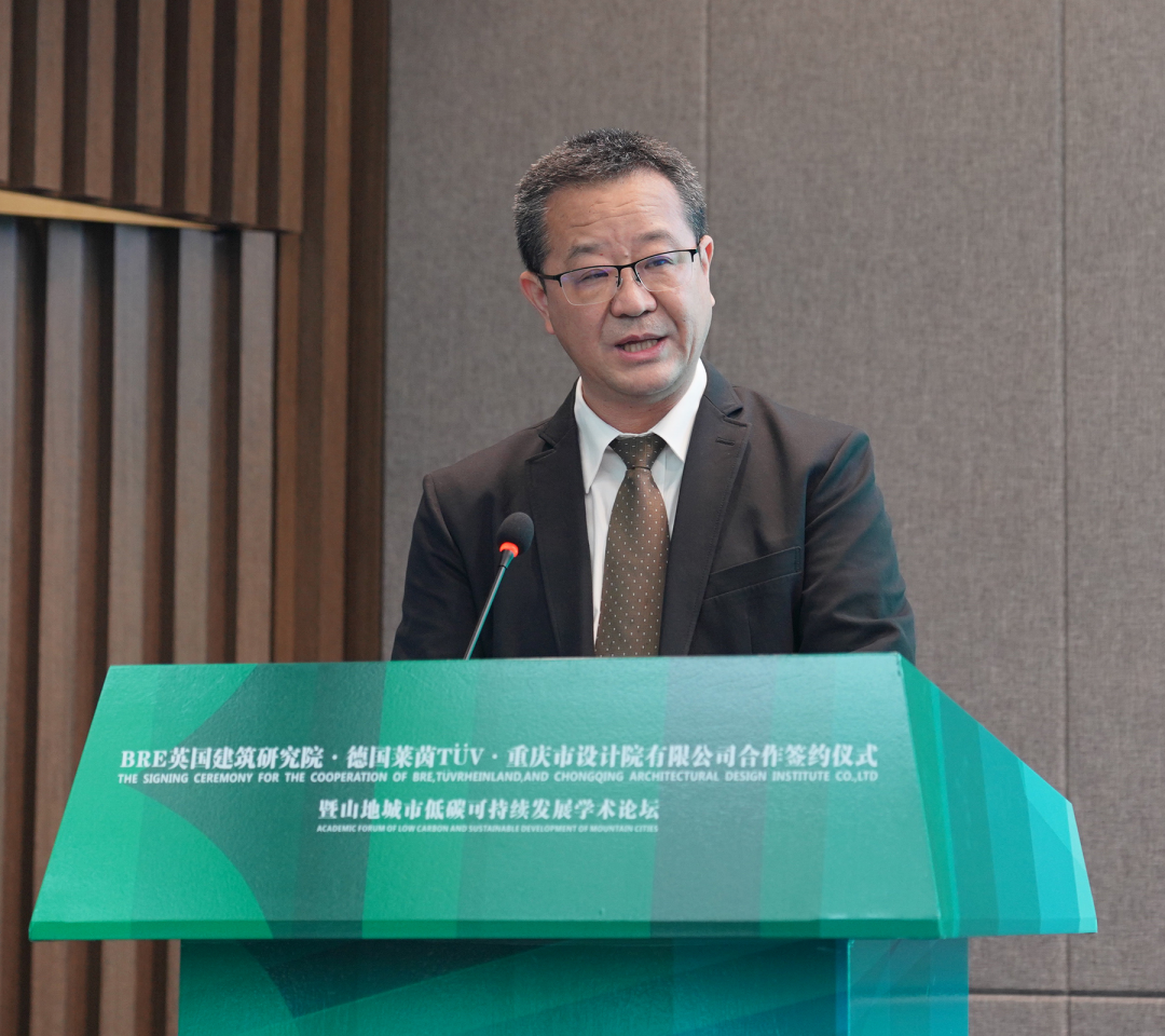 鲁志俊对市住房城乡建委领导、英国驻渝总领事、BRE英国建筑研究院、德国莱茵TÜV的到来表示欢迎。他指出,市设计院作为具有全国影响力、西南最具实力的勘察设计单位之一,近年来持续深耕绿色低碳发展,为重庆贡献了多个具有代表性的绿色建筑,提升了重庆绿色建筑的国际化水准。此次通过各方的合作,将共同探索实现双碳目标的技术解决方案,为城乡建设领域的绿色发展做出更大的贡献。