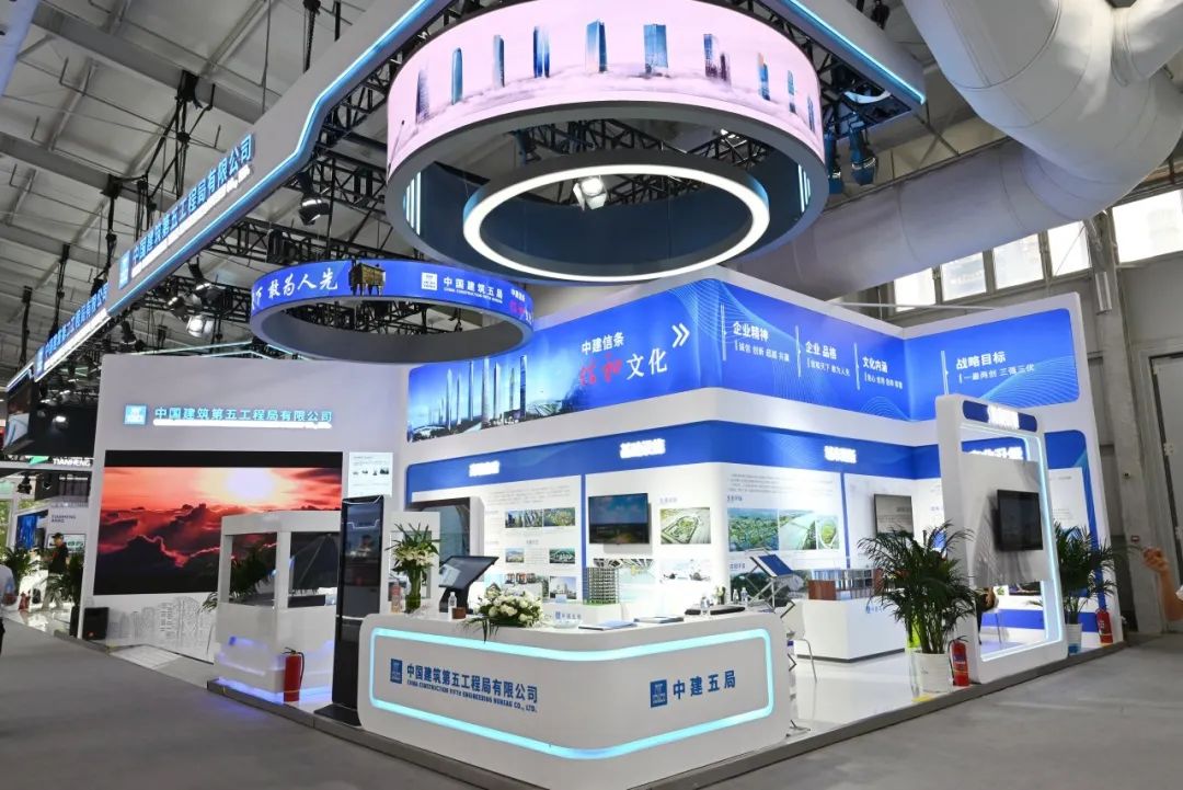中建五局围绕城市更新、基础设施、产业升级、高端房建、“一带一路”共5大主题板块,带来3项自主创新技术成果、10余项高新技术优势,展示30余个重点项目,体现其在智慧建造、绿色低碳、新5G及智能制造等方面的最新成果。走进中建五局的展区,实物模型、全息投影、VR体验、触屏互动等展项为观众提供沉浸式、互动式、智能式的现场观展体验。