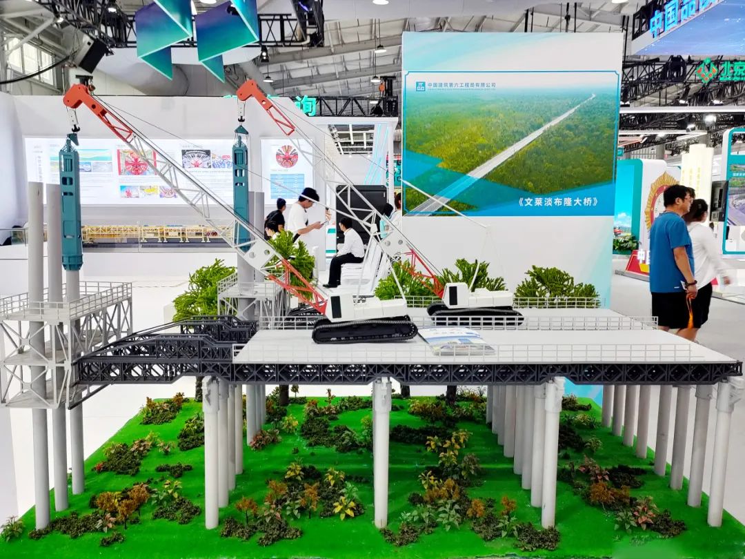 中建二局围绕“建· 共享生态世界 筑· 智慧未来城市”主题,集中展示了公司在海外重点工程、未来城市建设、智能低碳装备及产品、清洁能源等方面的创新成果。