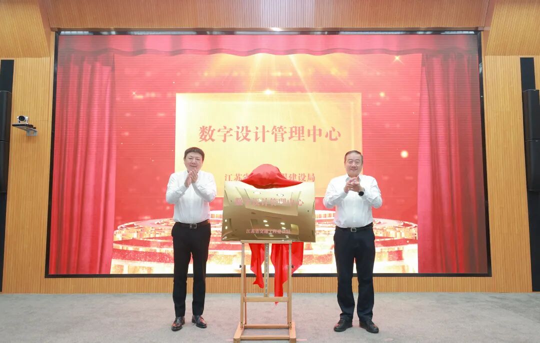 省交通运输厅党组成员、省交通工程建设局局长蒋振雄和华设设计集团董事长杨卫东为数字设计管理中心揭牌。