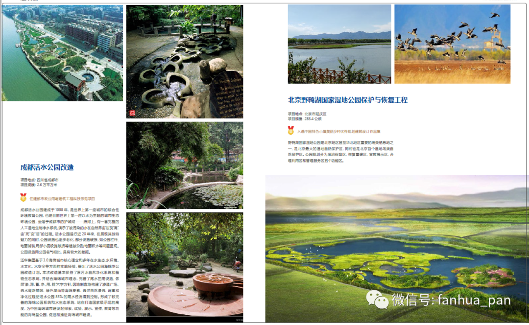 》等论著,《城市流域水资源循环利用与可持续发展规划研究》等课题研究,南京市海绵城市建设试点城市实施方案的研究,武汉市低影响开发( LID)的城市源头雨水系统应用与示范研究,《基于城乡雨水消纳的生态景观体系构建及应用》并荣获湖南省科学进步奖,荣获多项发明及新型专利证书,参与的上百个项目分别获得国家级、省部级规划设计奖项。