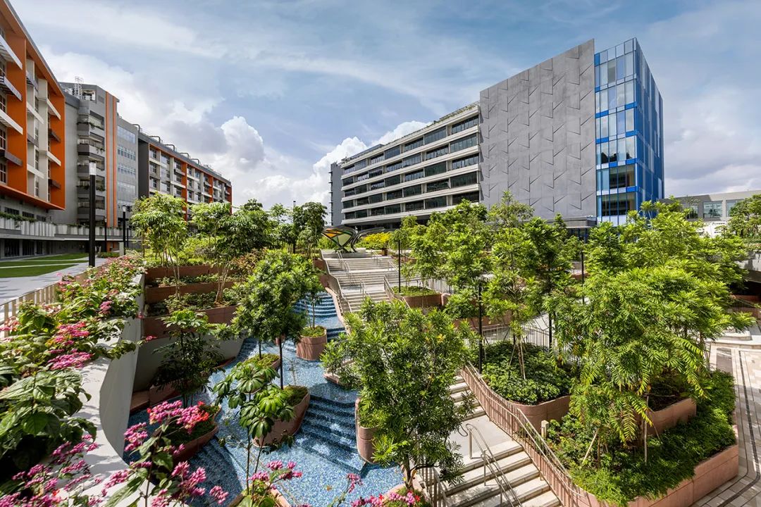 景观设计融入生物亲和元素,通过雨水循环和绿色植被,创造宜人的自然环境,促进学生和教职工的健康与福祉。