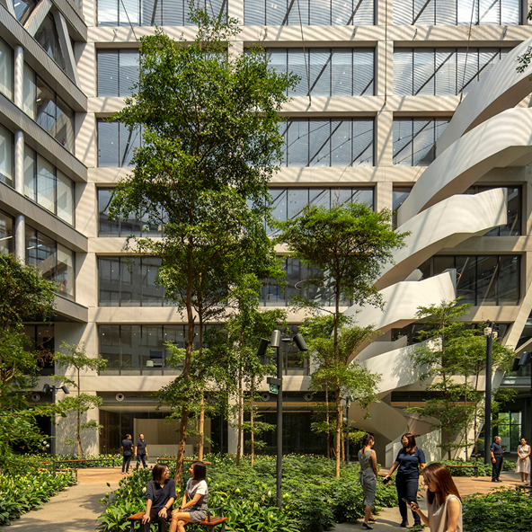 位于新加坡北部最大的综合医院——兀兰健康综合医疗园(Woodlands Health Campus)近日已开始分阶段投入使用,盛裕集团成员企业SAA建筑设计作为园区的首席建筑顾问,将可持续理念贯穿到园区从开发到运营的整个流程中,致力于将其打造为一个的森系康养医疗典范。通过将医疗设施与自然环境相结合,不仅提升了医疗服务的质量,也为社区居民创造了一个健康、绿色的疗愈空间。