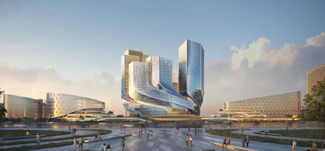 总部园区计划容纳23,000名腾讯员工,将提供丰富多样的空间类型和一系列可定制的楼层,以供灵活使用并适用未来需求。在“智慧之源”(Vortex Incubator)及四座塔楼周围,五栋独立的翼楼从景观中浮现,为社区多元化和繁荣提供必要的额外灵活空间。