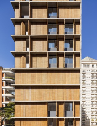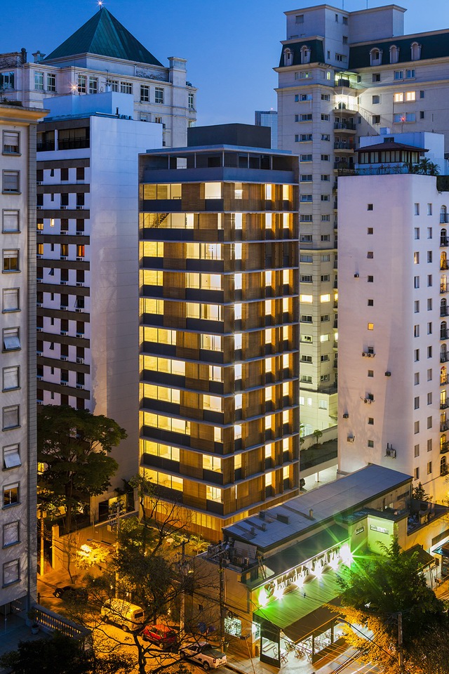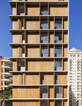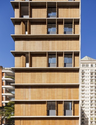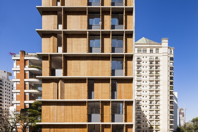 建筑的另外两个面采用了混凝土去模拟一种砖石砌筑的机理,达到一个粗野主义的效果与前面的木质穿孔板形成鲜明对比,同时也更加符合圣保罗的城市风格。