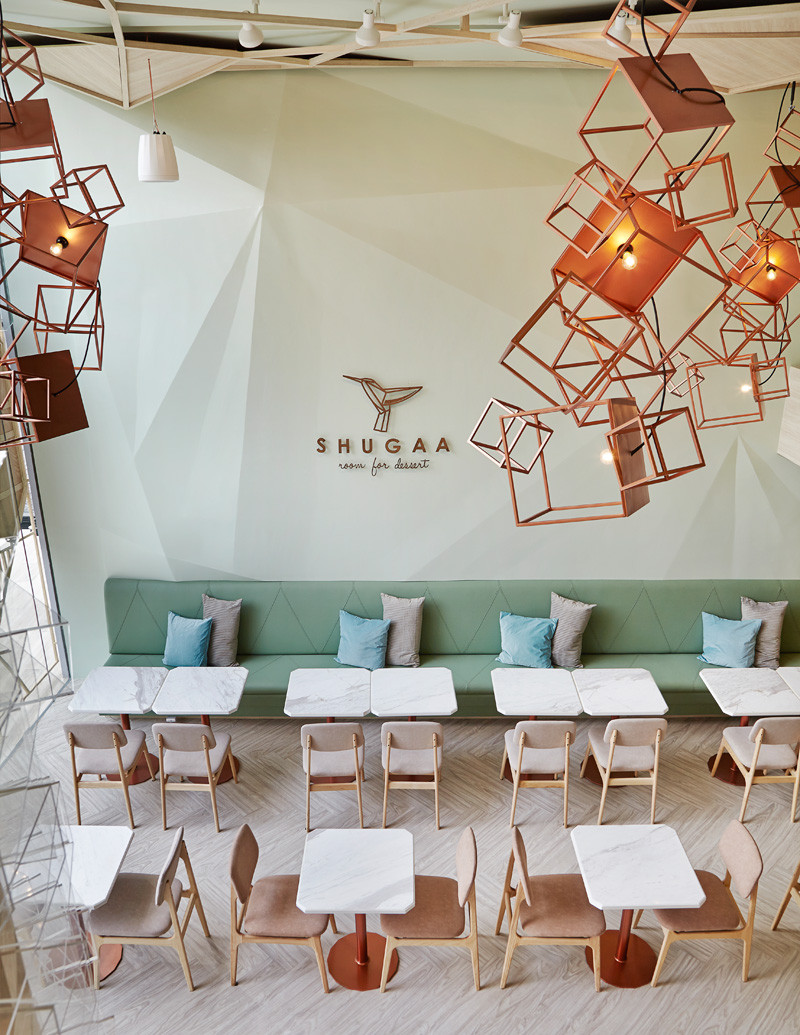 SHUGAA是一家位于泰国曼谷的甜点餐厅,设计公司的名字很有趣——party/space/design